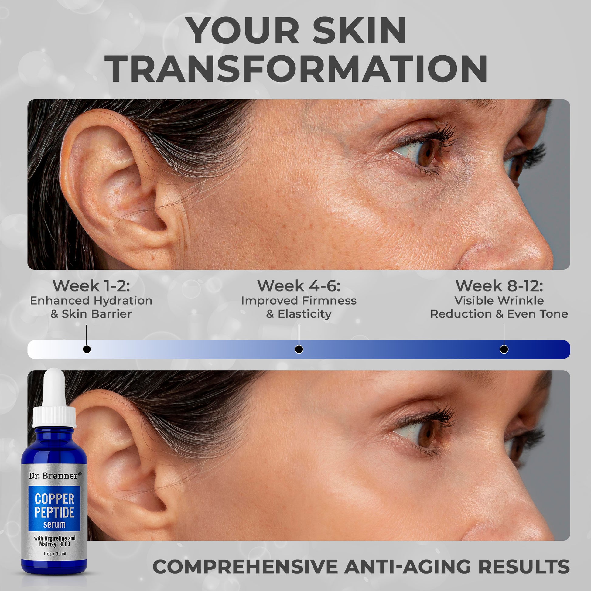 - DERMATOLOGIST-FORMULATED QUALITY - Dr. Brenner's professional-grade serum delivers visible improvements in 4-8 weeks of consistent use. Lightweight, fast-absorbing formula suitable for all skin types. 1 fl oz provides 2-3 months of daily use with optimal pH stability for maximum peptide efficacy.