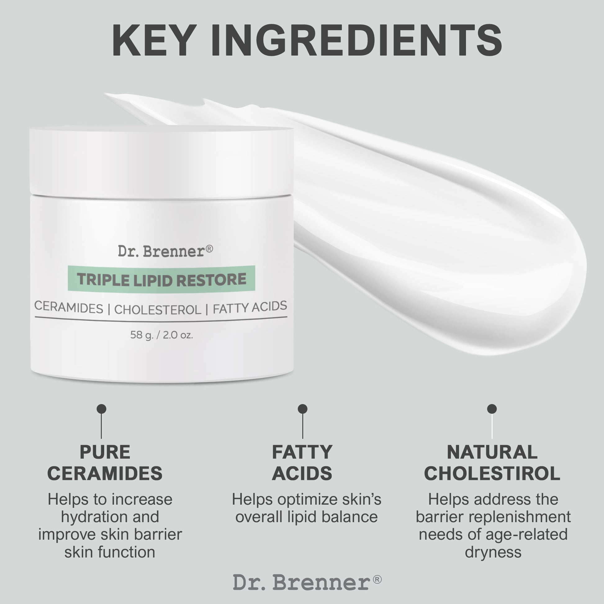 Triple Lipid Restore is our anti-aging cream that contains the optimal amount of pure ceramides, natural cholesterol, and fatty acids. It is proven to nourish skin and correct signs of aging. This ultra effective facial moisturizer contains the best ingredients to correct and help restore skin's external barrier and support natural self-repair, while potently nourishing aging skin for improvement in the visible appearance of skin smoothness, elasticity, and overall radiance.